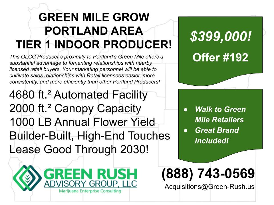 Offer #451 *Indoor/Outdoor, Tier II Recreational Producer Investment Opportunity $500,000 Turnkey Producer Operation in Washington County Guaranteed Retail Buyer *Mixed [...]