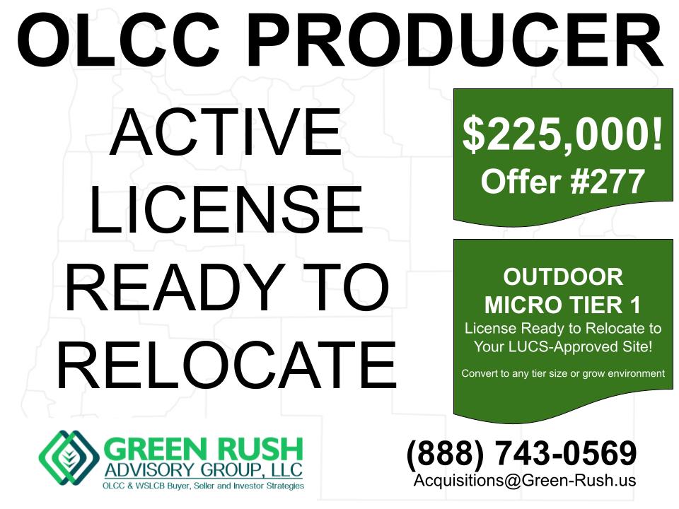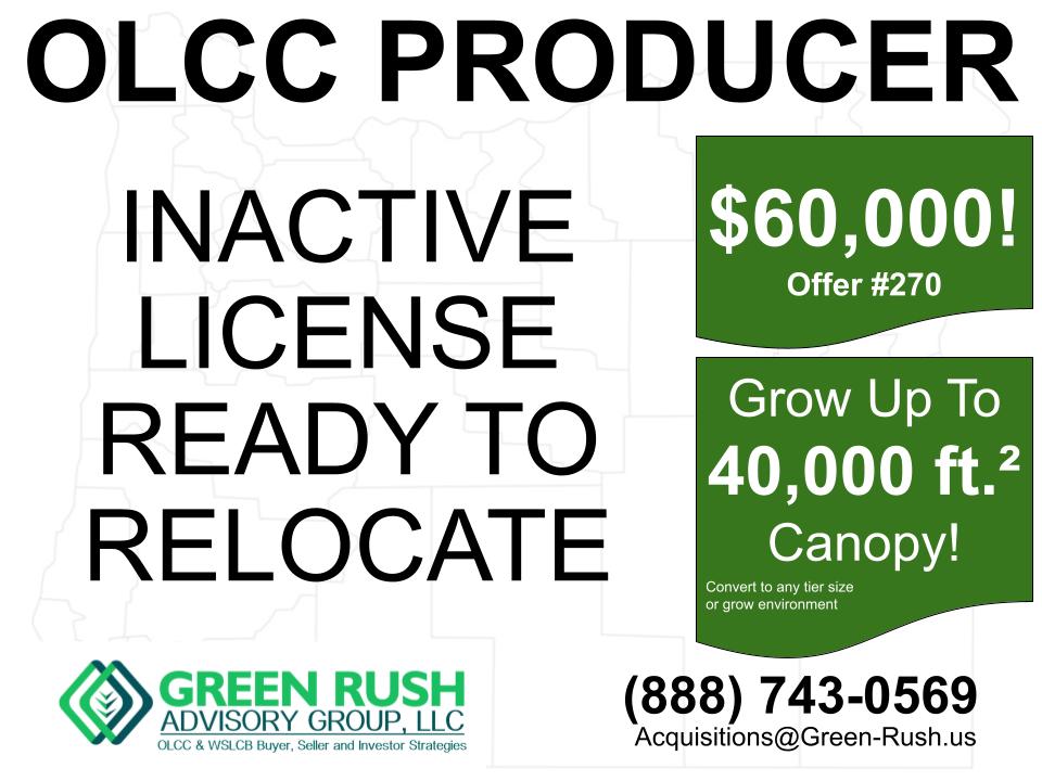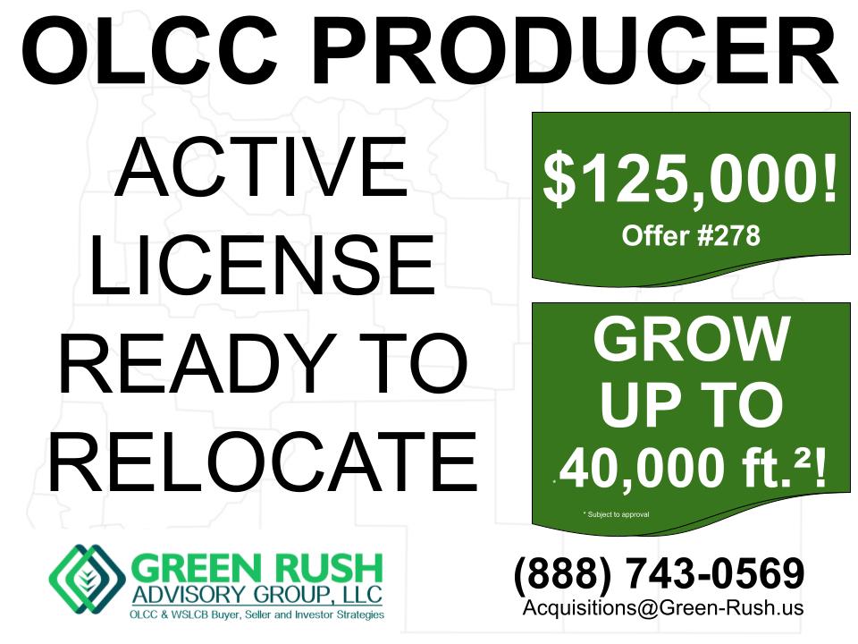 OLCC RECREATIONAL MARIJUANA PRODUCER LICENSE FOR SALE ACTIVE LICENSE READY TO RELOCATE BUYERS SHOULD HAVE FUNDS READY AND LUCS-APPROVED SITE [...]