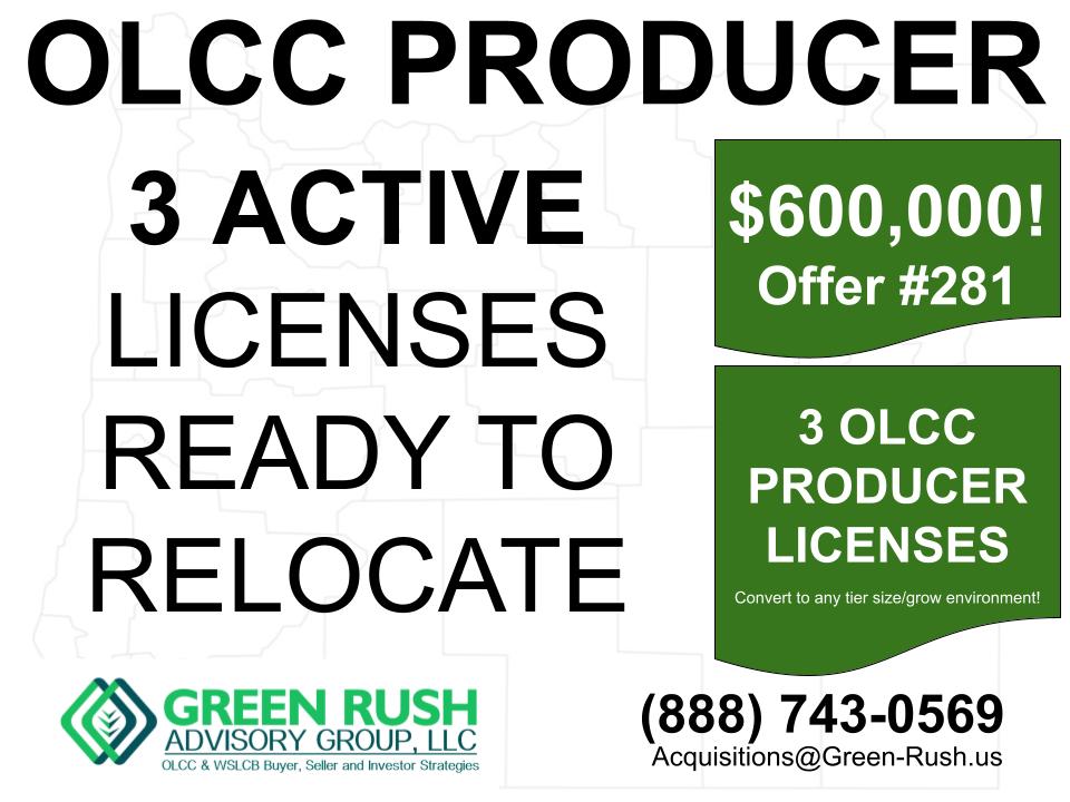 3 OLCC RECREATIONAL MARIJUANA PRODUCER LICENSES FOR SALE ACTIVE LICENSES READY TO RELOCATE BUYERS SHOULD HAVE FUNDS READY AND LUCS-APPROVED [...]