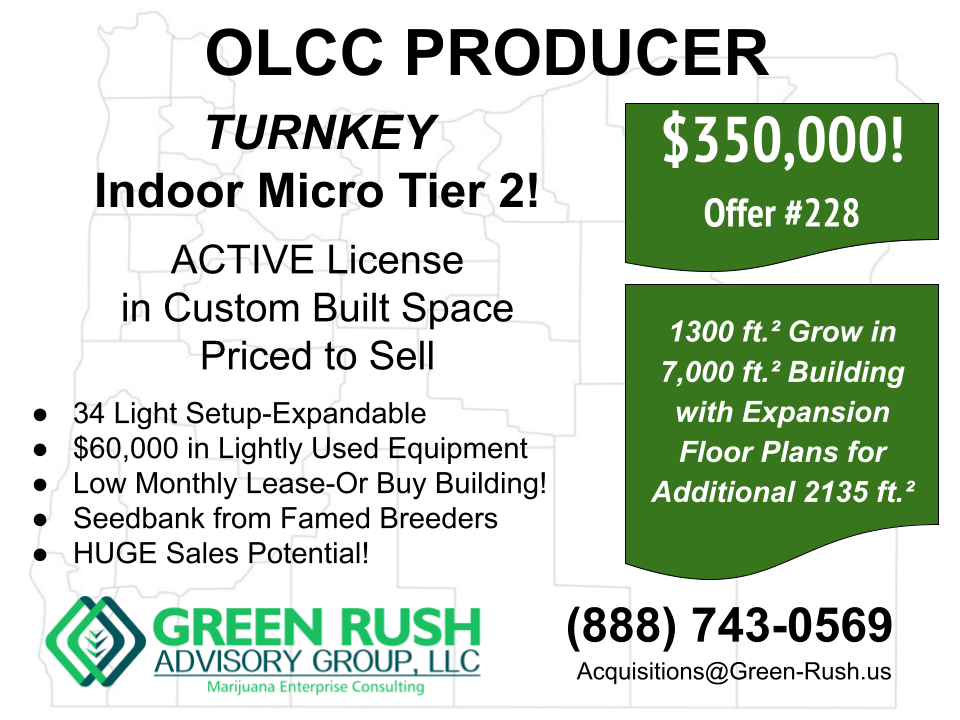 [SALE PENDING, 04/13/21] OLCC PRODUCER OUTDOOR TIER 2 READY TO RELOCATE Just $250,000! Offer #235 Call us today! (888)-743-0569 Fast-Track [...]