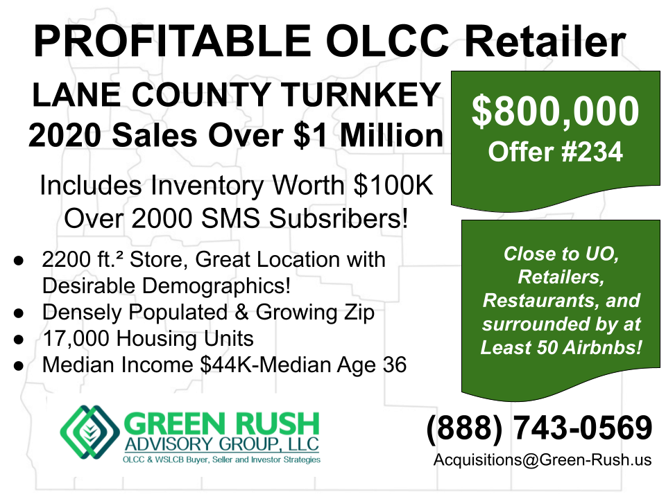 [Unavailable, 07/13/21] PROFITABLE OLCC RETAILER Lane County Over $1 Million in Annual Sales Includes Inventory Worth $100K Over 2100 SMS-Text [...]