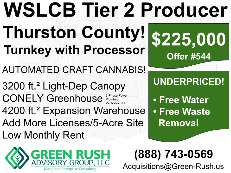 [05/10/22 Sale Pending] Thurston County WSLCB Tier 2 Producer/Processor AUTOMATED CRAFT CANNABIS! 3200 ft.² Light-Dep Canopy CONELY Greenhouse 4200 ft.² [...]