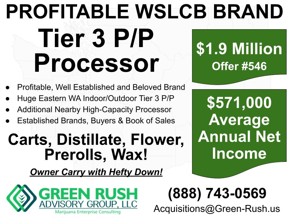 [Currently Unavailable.] Profitable Eastside WSLCB / I-502 Tier 3 Producer and Two Processors Turnkey.... Everything! Profitable and Established Brands On [...]