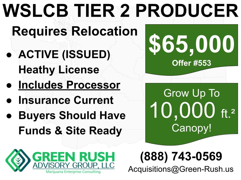 [] I-502 / WSLCB Tier 2 Producer/Processor License For Sale REQUIRES RELOCATION $65,000 Offer #553 Call Us Today! (888) 743-0569 [...]