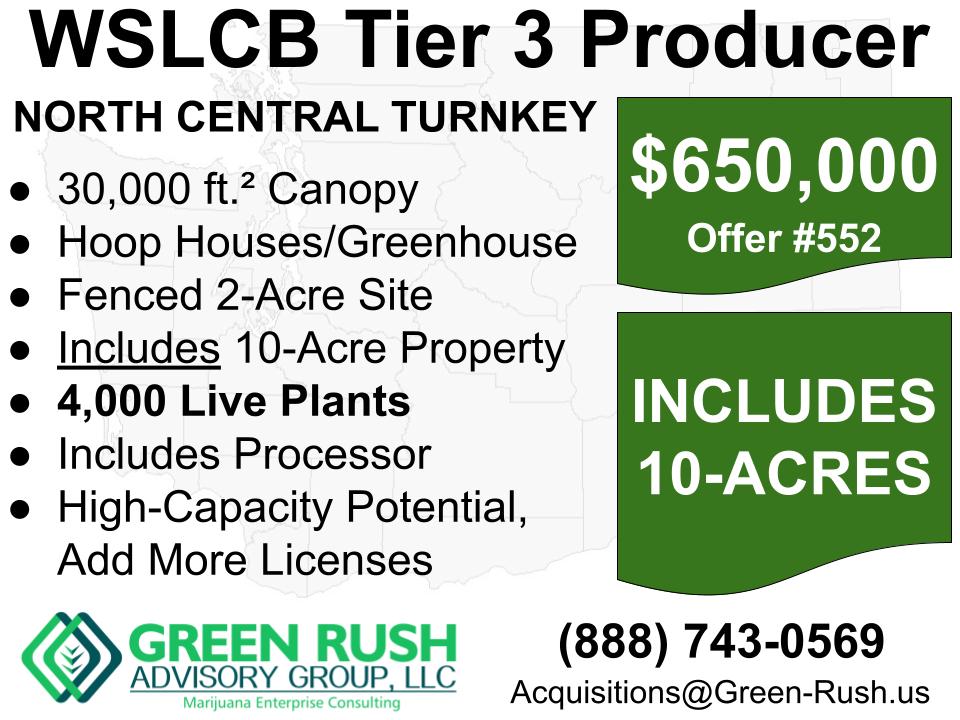 North Central WA WSLCB / I-502 Tier 3 Producer/Processor Includes Irrigated 10 Acres Full 30,000 ft.² Canopy Fenced 2-Acre Licensed [...]