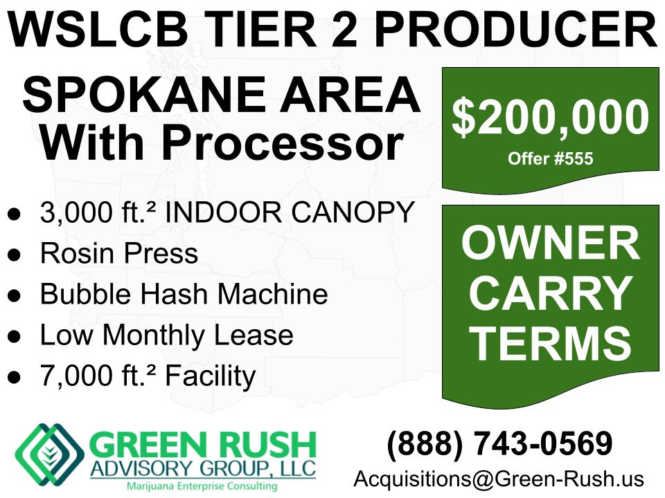 Spokane-Area I-502 / WSLCB Tier 2 Producer/Processor For Sale, Offer #555