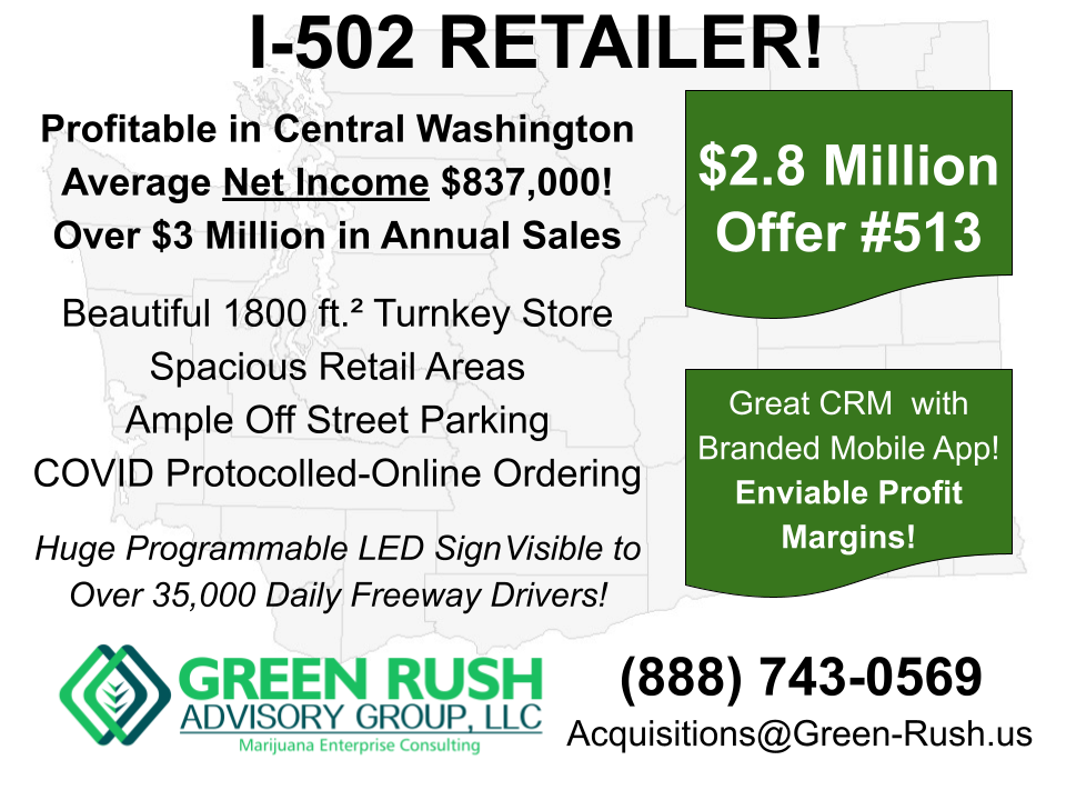 I-502 RECREATIONAL RETAILER! Profitable Central Washington Store Average Annual Net Income Over $830,000 Annual Sales Average Over $3 Million Beautiful [...]