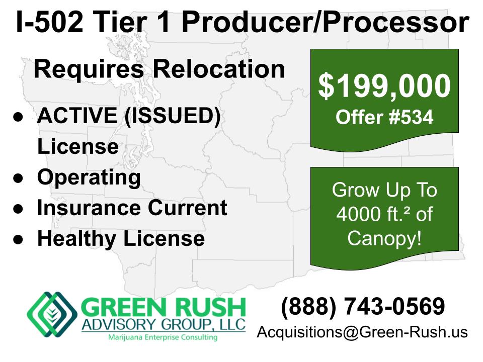 WSLCB / I-502 Tier 1 Producer-Processor Requires Relocation $199,000 Offer #534 Call Us Today! (888) 743-0569 LICENSE TYPE: MARIJUANA PRODUCER [...]
