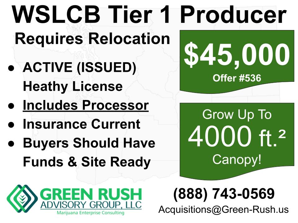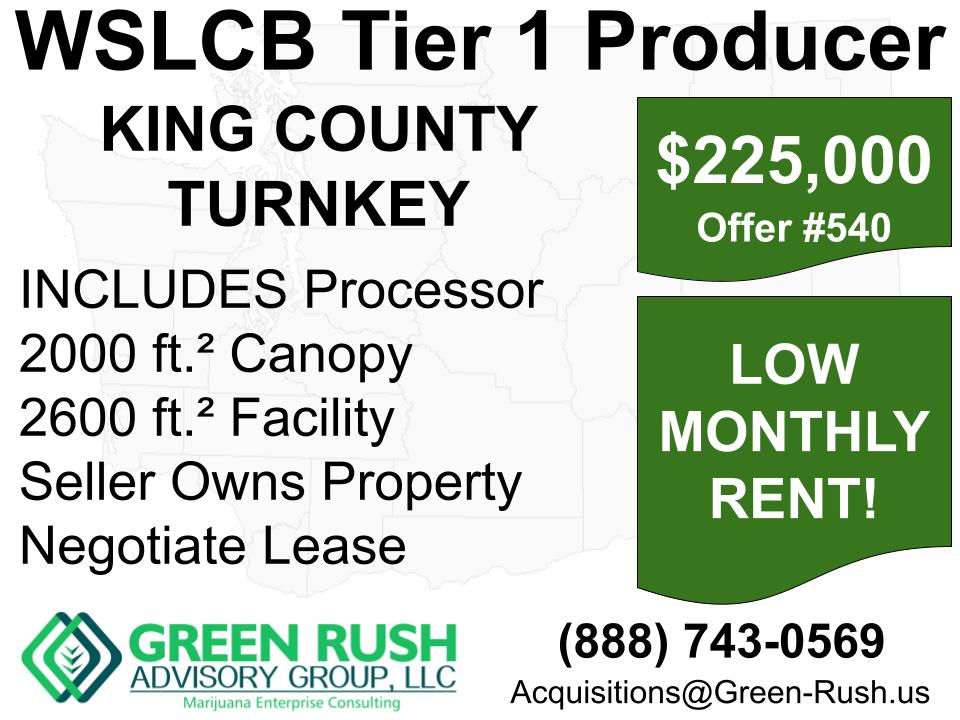 KING COUNTY WSLCB Tier 1 Marijuana Producer/Processor For Sale, Offer #540