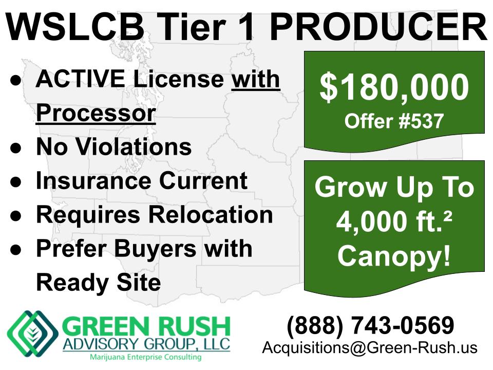 WSLCB Tier 1 Marijuana Producer-Processor License Requires Relocation $110,000 Offer #537 Call Us Today! (888) 743-0569 LICENSE TYPE: MARIJUANA PRODUCER [...]