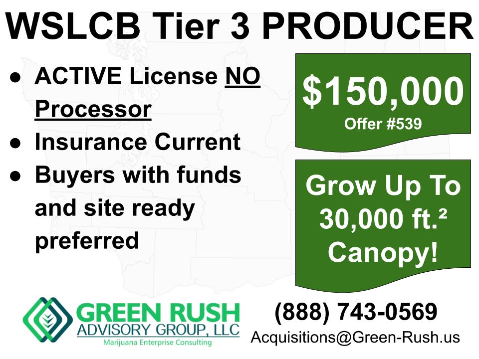 [SALE PENDING] King County WSLCB Tier 1 Producer-Processor $225,000 Offer #540 Call Us Today! (888) 743-0569 LICENSE TYPE: MARIJUANA PRODUCER [...]